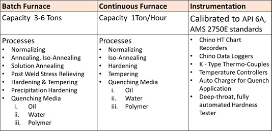 - Combination of Batch & Continuous furnaces with Oil, Water & polymer quenching facility from 500 kg to 4.5 Tons per lot.